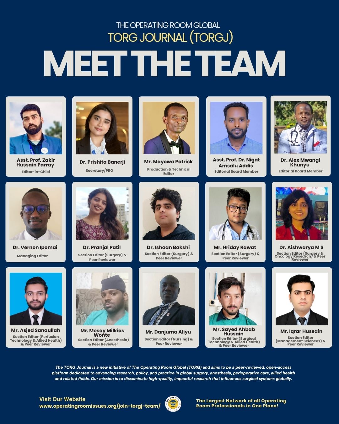 Together, this team forms the backbone of TORGJ’s scholarly and operational framework. Each member plays a vital role in building the journal from the ground up, ensuring that it reflects the values of transparency, inclusion, and academic rigor that define The Operating Room Global (TORG).