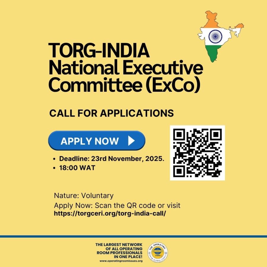 The Operating Room Global (TORG) invites passionate perioperative and surgical care professionals based in India to apply for leadership roles in the TORG India National Executive Committee (ExCo).